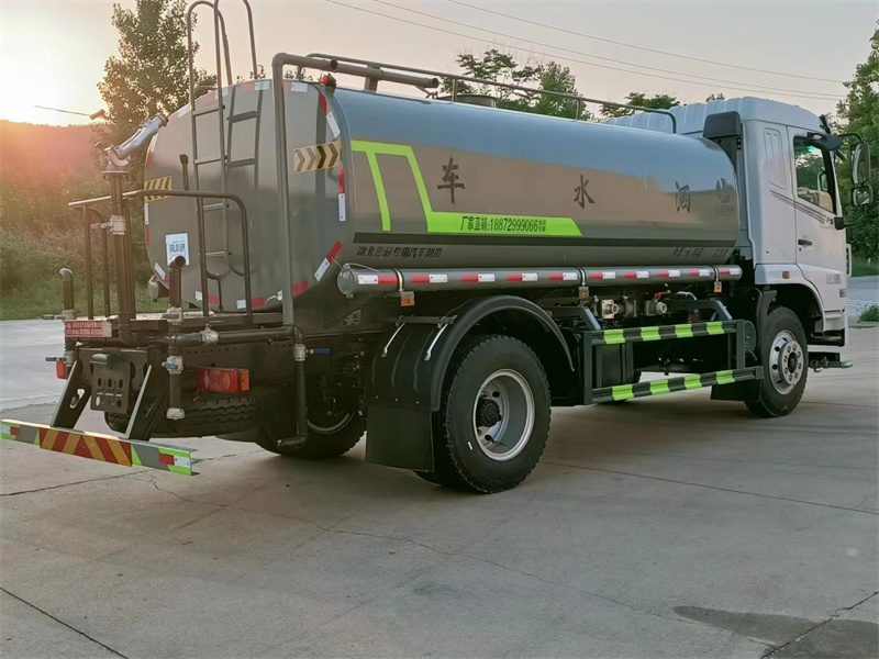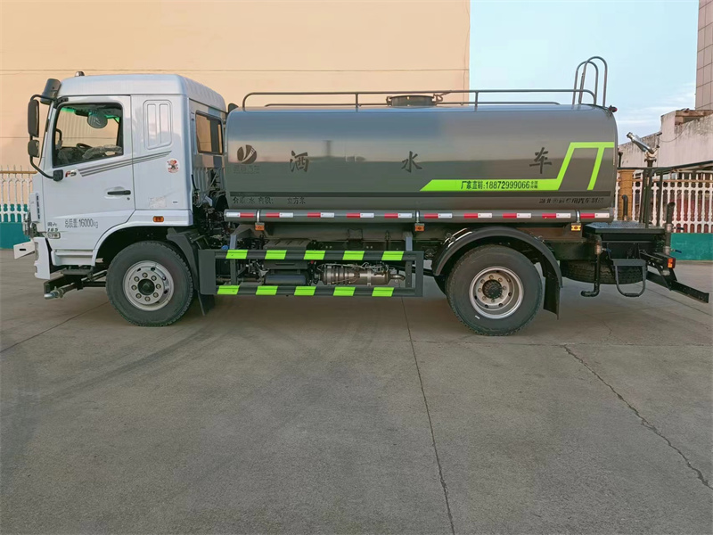 東風(fēng)12噸灑水車產(chǎn)品配置 1.底盤配置: 發(fā)動(dòng)機(jī)玉柴 165 馬力(四缸),法士特 8 檔變速箱,前橋 2.8 噸, 后橋 8 噸,9.00 鋼絲胎,軸距 3950,斷氣剎,ABS,空調(diào),氣囊座椅, 電動(dòng)玻璃,中控鎖,行駛記錄儀2.上裝配置: 1、罐體約為 12 方, 2、邊燈帶電,罐體尾部上方標(biāo)配 2 個(gè)紅色示寬燈, 3、標(biāo)配前噴為鴨嘴直沖,標(biāo)配后沖,用戶可根據(jù)自己的需求,來(lái)調(diào) 整對(duì)沖位置。 4、沖孔平臺(tái)(承載能力加強(qiáng)),炮筒后蓋為定制型螺栓卡扣, 5、前噴、后沖、后灑、側(cè)噴,綠化高炮開關(guān)球閥均采用工程專用 50 大通徑銅球閥, 6、新式軸承式水炮,更加耐用, 7、60-90 型水泵, 8、防腐法蘭墊片, 9、鋁制后灑,不易炸開 10、罐體自動(dòng)焊(美國(guó)林肯焊機(jī)及電源),拼板自動(dòng)焊接,封頭環(huán) 縫焊接,無(wú)氣孔,焊縫美觀。 11、側(cè)護(hù)網(wǎng)、后保險(xiǎn)杠、均為螺栓連接,方便拆卸,維修方便。 12、塑料擋泥板,替代鐵擋泥板,更加輕便,用螺栓連接,方便拆 卸。 13、前部、后部主管連接處為 6 孔圓法蘭,不易沖墊