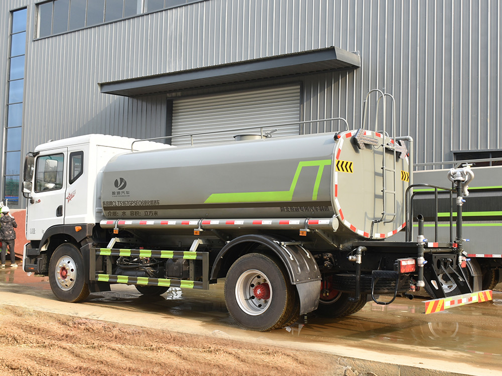 東風D9灑水車標配前噴(鴨嘴)、后沖、后灑、側噴、后置式工作 平臺,平臺上配置綠化水炮(可 360°旋轉,既可以調(diào)成柱狀,也可 以調(diào)成霧狀,更可以調(diào)成直沖狀、大雨、中雨、小雨、毛毛雨),配 備優(yōu)質(zhì)大功率專用灑水泵(可自吸自排,可從河里或池塘抽水到罐體), 取力器,雜物過濾網(wǎng),消防接口,自流球閥系統(tǒng)、取力器、球閥、濾網(wǎng) 均為國家標準產(chǎn)品,主管道加粗,法蘭墊、法蘭盤加厚,大通徑球閥。 整體具備性能優(yōu)良安全可靠、效率高、流量大、維修方便等特點。
