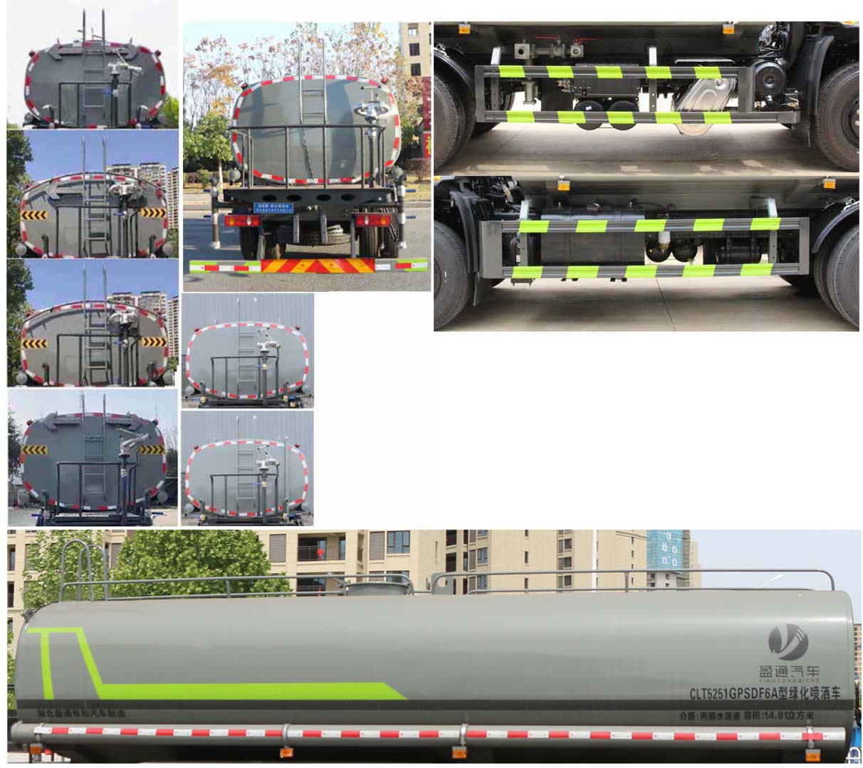 備注 | 該車(chē)主要用于城鄉(xiāng)園林綠化噴灑,噴藥;主要裝置為罐體及噴灑裝置;隨底盤(pán)選裝駕駛室;罐體總?cè)萘?14.81立方米,罐體有效容積:14.11立方米,罐體外形尺寸(長(zhǎng)×長(zhǎng)軸×短軸)(mm):6800×2390×1620,6700×2400×1480;側(cè)、后防護(hù)材料均為:Q235,連接方式均為:螺栓連接,后部防護(hù)截面尺寸(mm):120×50,后部防護(hù)離地高度(mm):460;ABS型號(hào)/生產(chǎn)廠家:3631010-C2000/東科克諾爾商用車(chē)制動(dòng)系統(tǒng)(十堰)有限公司,J ABS/焦作博瑞克控制技術(shù)有限公司.采用底盤(pán)4350+1350(mm)軸距。選裝擋泥板樣式。選裝后部箭頭燈,選裝后部弧形噴灑裝置,選裝后部樣式,選裝水炮支架位置,選裝自動(dòng)球閥安裝位置。選裝不同外觀的后處理,選裝油箱電瓶位置,選裝罐體頂部不帶高位花灑裝置。 | ||