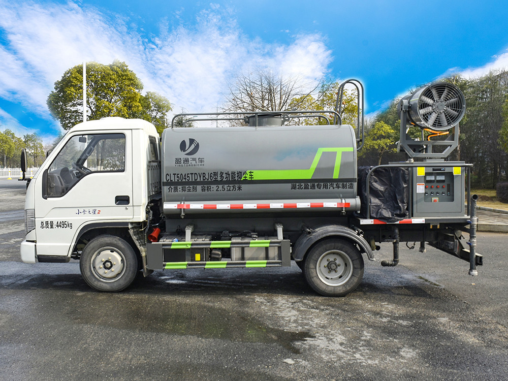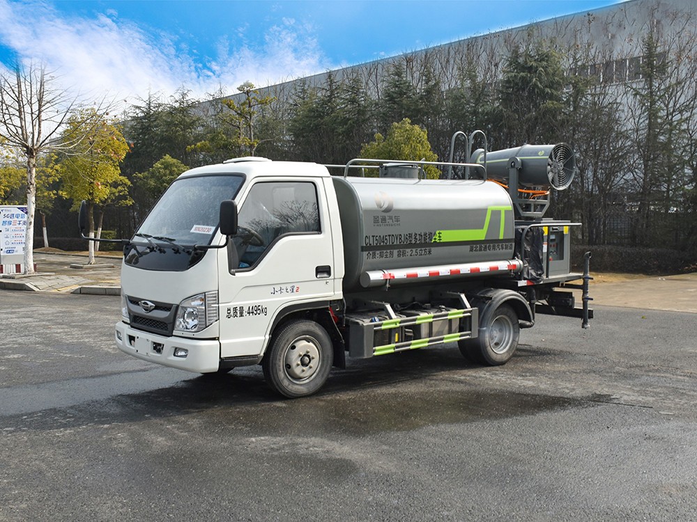 3方霧炮灑水車 整車型號 CLT5045TDYBJ6 型多功能抑塵車 2 發(fā)動機型號 Q23-95C60 3 發(fā)動機馬力/功率 全柴 95 馬力/70KW 4 發(fā)動機排量 2300ML 5 變速箱 蒙沃 5 檔箱 6 輪胎規(guī)格 6.00 鋼絲胎 7 軸距 2600 8 總質(zhì)量 4495KG 9 整備質(zhì)量 2700KG 10 額定載質(zhì)量 1665KG 11 整車尺寸(長×寬×高) 5.365*1.9*2.6 12 罐體容積 2.7 方 13 燃料種類 柴油 14 排放標準 國六 15 水泵型號 40/50 16 罐體材質(zhì) Q235 碳鋼產(chǎn)品功能展示 霧炮 后灑 后對沖 高炮 側(cè)噴