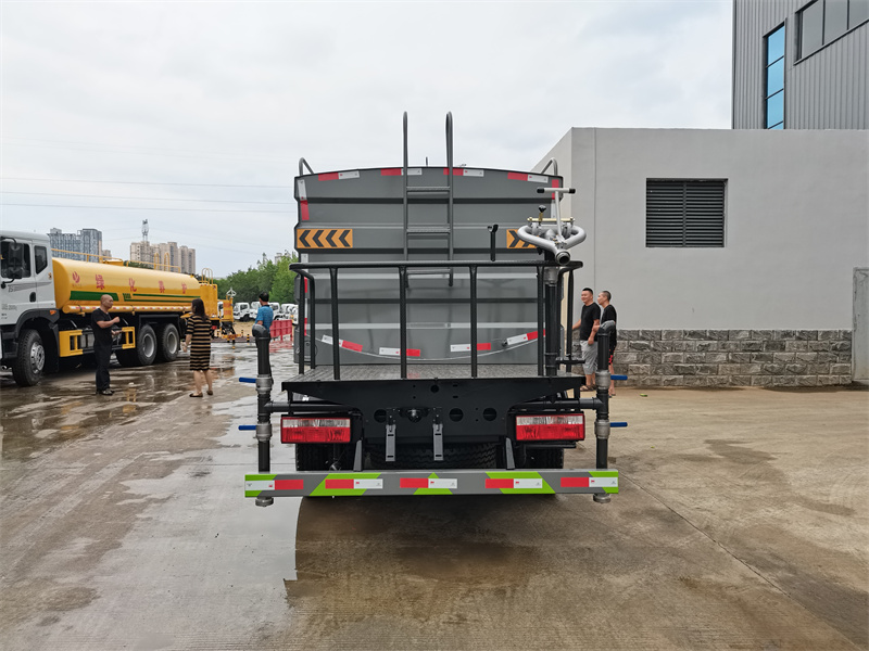 東風7方霧炮灑水車產(chǎn)品配置 1.底盤配置: 發(fā)動機玉柴 140 馬力,萬里揚 6 檔變速箱,2T 前橋,3.5T 后橋,7.00 鋼絲胎, 軸距 3308,氣剎,ABS,空調(diào),電動門窗,中控鎖,雙層大梁 。 2.上裝配置: 1、罐體約為 7 方 2、邊燈帶電,罐體尾部上方標配 2 個紅色示寬燈 3、標配前噴為鴨嘴直沖,標配后對沖,可根據(jù)需求來調(diào)整對沖位置 4、花紋防滑平臺,炮筒后蓋為定制型螺栓卡扣 5、前噴、后對沖、后灑、側噴,綠化高炮球閥均采用 50 大通徑不銹鋼球閥 6、新式軸承式水炮,更加耐用 7、40-50 型水泵 8、防腐法蘭墊片 9、鋁制后灑,不易炸開 10、罐體自動焊(美國林肯焊機及電源),拼板自動焊接,封頭環(huán)縫焊接, 無氣孔,焊縫美觀 11、側護網(wǎng)、后保險杠、均為螺栓連接方便拆卸維修方便。 12、塑料擋泥板,替代鐵擋泥板,更加輕便,用螺栓連接,方便拆卸。 13、前部、后部主管連接處為 6 孔圓法蘭不易沖墊