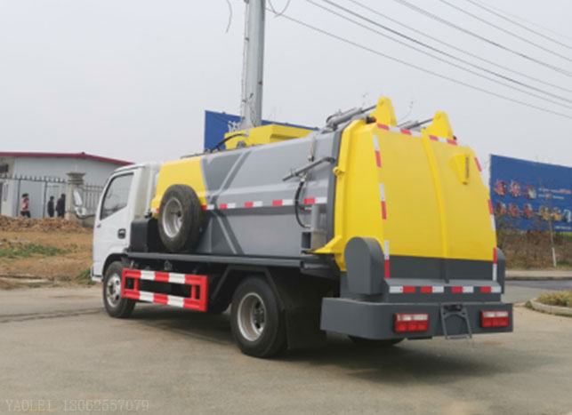 東風(fēng)小多利卡餐廚垃圾車改裝容積4~5m3,罐體厚度4.75mm,配備掛桶提升機(jī)構(gòu),后蓋液壓開啟,罐體可以舉升自卸,尾部帶自流閥。