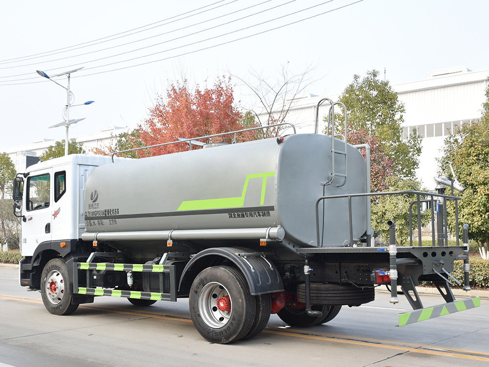 東風(fēng)D9灑水產(chǎn)品配置 1.底盤配置: 發(fā)動(dòng)機(jī)康明斯 230 馬力(六缸),法士特 8 檔變速箱,2315 駕駛 室,3.9T 前橋,8T 后橋,10.00 鋼絲胎,軸距 3950,250 大梁,斷氣 剎,空調(diào),電動(dòng)玻璃,中控鎖。2.上裝配置: 1、罐體約為 12 方, 2、邊燈帶電,罐體尾部上方標(biāo)配 2 個(gè)紅色示寬燈, 3、標(biāo)配前噴為鴨嘴直沖,標(biāo)配后沖,用戶可根據(jù)自己的需求,來(lái)調(diào) 整對(duì)沖位置。 4、沖孔平臺(tái)(承載能力加強(qiáng)),炮筒后蓋為定制型螺栓卡扣, 5、前噴、后沖、后灑、側(cè)噴,綠化高炮開關(guān)球閥均采用 50 大通經(jīng) 不銹鋼球閥, 6、新式軸承式水炮,更加耐用, 7、60-90 型水泵, 8、防腐法蘭墊片, 9、鋁制后灑,不易炸開 10、罐體自動(dòng)焊(美國(guó)林肯焊機(jī)及電源),拼板自動(dòng)焊接,封頭環(huán) 縫焊接,無(wú)氣孔,焊縫美觀。 11、側(cè)護(hù)網(wǎng)、后保險(xiǎn)杠、均為螺栓連接,方便拆卸,維修方便。 12、塑料擋泥板,替代鐵擋泥板,更加輕便,用螺栓連接,方便拆 卸。 13、前部、后部主管連接處為 6 孔圓法蘭,不易沖墊
