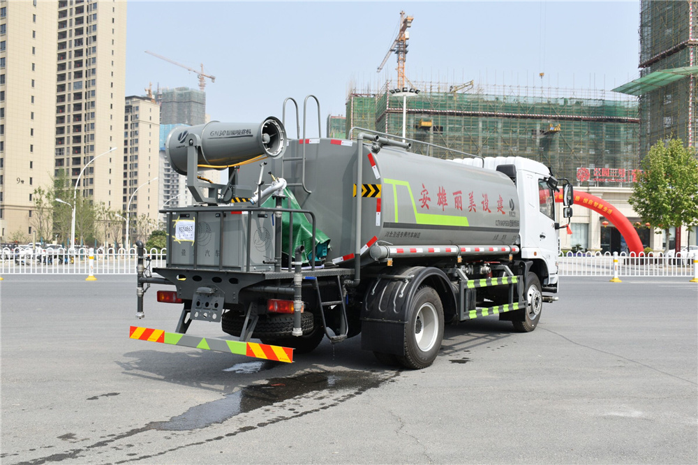 灑水車專用功能配置:罐體實(shí)際容積約為12立方米,(罐體有效參數(shù)9.79立方米、額定載質(zhì)量9325kg、)采用武鋼優(yōu)質(zhì)碳鋼板卷壓成型。配備專用灑水泵,自吸自排,前噴后灑、側(cè)噴、后工作平臺(tái)及灑水高壓炮。灑水泵自吸高度為6米左右,整車灑水寬度14米左右,后工作平臺(tái)水炮可調(diào)成:直沖狀、大雨、中雨、小雨、毛毛雨,有效射程≥28米,整車帶接頭、水位計(jì),自流閥。后工作平臺(tái)主管路帶1寸澆花接口,附送2根3米水管,1個(gè)爬梯,兩側(cè)及后保險(xiǎn)杠。