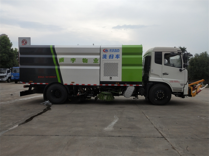 洗掃車是道路清掃車系列中的一款路面清掃保潔車輛。具有路面清洗、路面清掃路緣和路緣石立面洗刷、低壓沖洗、噴霧除塵等多功能。有"全洗掃"、 "左洗掃"、 "右洗掃"、 "全掃"、 多種作業(yè)模式可選擇。選擇"全洗掃"模式清洗廣場和路面,清洗效率高效果好,洗凈率達95%以上。選擇"左洗掃"或"右洗掃"模式清洗路面和路緣 。需要進行路面清掃或路面保潔作業(yè)時,可選擇掃路模式。需要噴霧除塵時,可開啟噴霧裝置,進行噴霧除塵作業(yè)。可以像灑水車一樣對路面進行低壓沖洗作業(yè)。