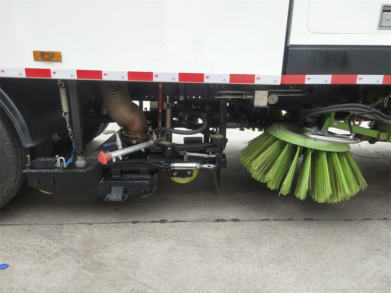 洗掃車采用中置兩刷盤,中置寬吸盤,配上具有防撞避障功能的V型高壓沖水架,組成一條大于3.5米的沖洗清掃帶。采用康明斯EQ6BT5.9-118型副發(fā)動機現(xiàn)階段亦有采用電動作為動力的驅動裝置橫置在車架中部,具有氣動離合裝置控制的抽吸風機布置在動力倉的左側。采用不銹鋼材料加工而成的水箱與垃圾箱均為采用方形瓦棱結構。水箱分為兩部位,一部分為前置獨立水箱,裝配在動力倉的前部;另一部分為設置在垃圾箱前部的水箱,可隨垃圾箱與動力倉罩同時升降。具有舉升功能的垃圾箱內(nèi)裝配有高壓沖洗噴頭,使得卸料更為輕松、干凈徹底。能夠隨垃圾箱體舉升的動力倉罩可使動力系統(tǒng)的維修保養(yǎng)極為便利。采用歐美地區(qū)的名優(yōu)配套部件,使得整車性能更為優(yōu)良,工作更為可靠。