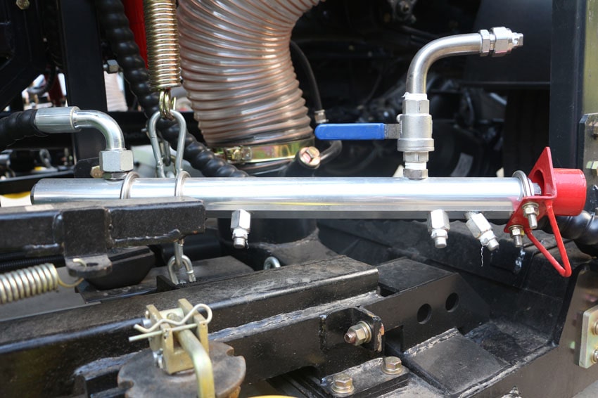 九、東風(fēng)天錦洗掃車(chē)的污水箱內(nèi)采用大平面斜坡結(jié)構(gòu),最大卸料角度可達(dá)50度,更易于傾倒垃圾。污水箱內(nèi)設(shè)置了防溢滿(mǎn)報(bào)警裝置和高壓噴淋清洗裝置,防溢滿(mǎn)報(bào)警裝置可防止污水作業(yè)時(shí)從吸管溢出,造成二次污染;高壓噴淋清洗裝置在傾倒垃圾后可對(duì)污水箱進(jìn)行自動(dòng)清洗,大大減輕了操作人員的勞動(dòng)強(qiáng)度。