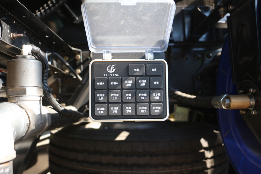 三、采用先進(jìn)的智能化一鍵控制技術(shù),全部作業(yè)均在駕駛室內(nèi)完成,作業(yè)時(shí),只需選定作業(yè)模式后,各作業(yè)機(jī)構(gòu)的啟動(dòng)與關(guān)停由程序自動(dòng)控制。具有全洗掃作業(yè)、左洗掃作業(yè)、右洗掃作業(yè)、全掃路作業(yè)、左掃路作業(yè)、右掃路作業(yè)、全吸作業(yè)、左洗作業(yè)和右洗作業(yè)等9種作業(yè)模式可選。