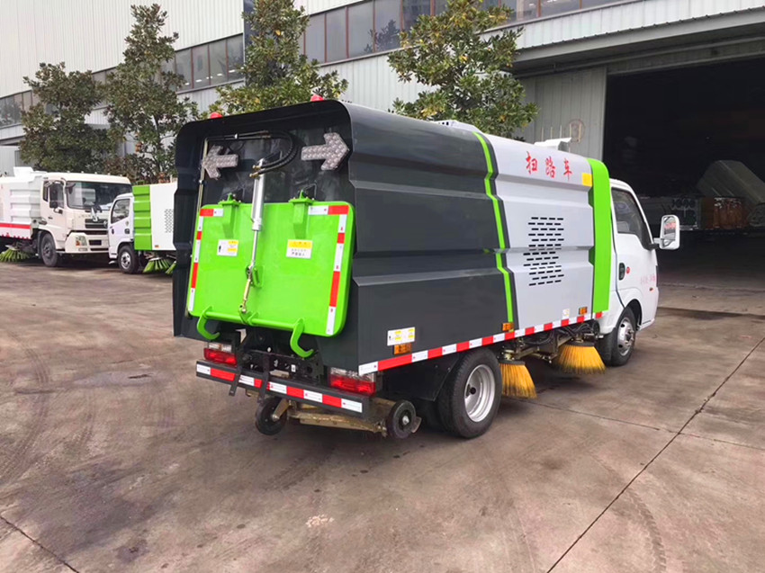 1. 采用吸掃混合的方式收集垃圾,濕式除塵、電液控制,液壓傾翻卸料的作業(yè)方式對(duì)路面進(jìn)行清掃作業(yè)。