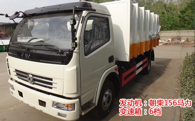東風(fēng)多利卡D7對接式垃圾車,D7單排駕駛室,朝柴156馬力發(fā)動(dòng)機(jī),6檔變速箱,.2噸后橋,7.50R16鋼絲胎,氣剎,帶ABS,方向助力。