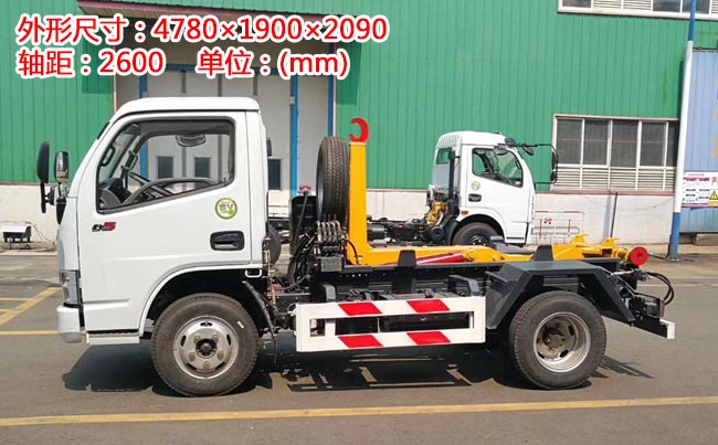 配套5~6立方米勾臂垃圾箱,高強(qiáng)度主勾臂,雙液壓油缸,采用國產(chǎn)油泵、多路閥、油缸,駕駛室外操作,尾部帶滾輪,箱體鎖緊裝置,鎖緊后可實現(xiàn)垃圾車自卸。