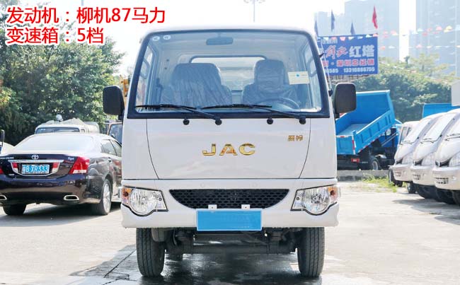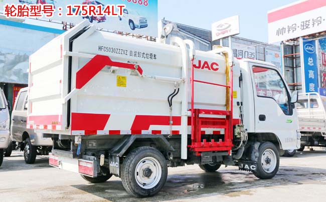 江淮康鈴X1掛桶式垃圾車,柳汽87馬力,5檔變速箱,1.4T后橋,2400軸距,175R14LT(后單胎),帶暖風、空調(diào)、可調(diào)方向盤、電預(yù)熱、電熄火、不翻轉(zhuǎn)、金屬漆。
