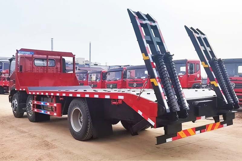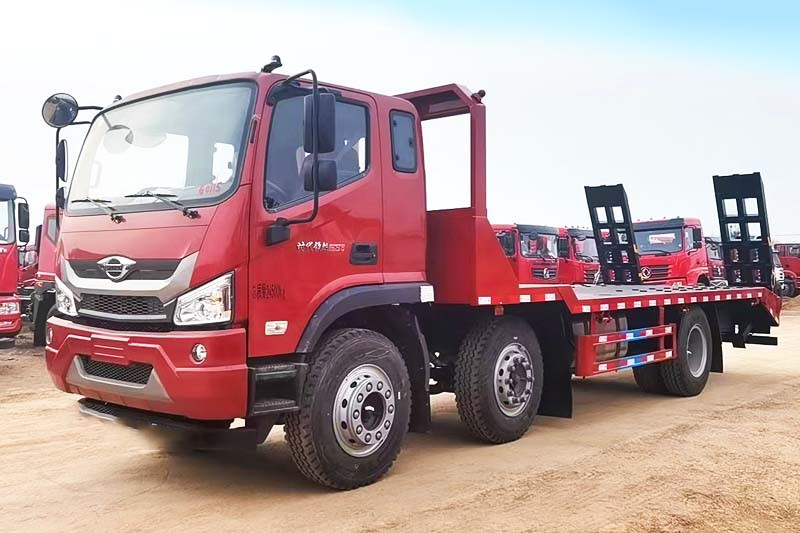 福田前四后四平板拖車,國(guó)六排放標(biāo)準(zhǔn),采用新款瑞沃ES5駕駛室,標(biāo)配中控鎖電動(dòng)門(mén)窗、原廠空調(diào)、氣囊座椅、定速巡航、ABS等,可定制液壓雙節(jié)折疊爬梯,爬梯長(zhǎng)度4米以上,運(yùn)輸叉車等機(jī)械設(shè)備