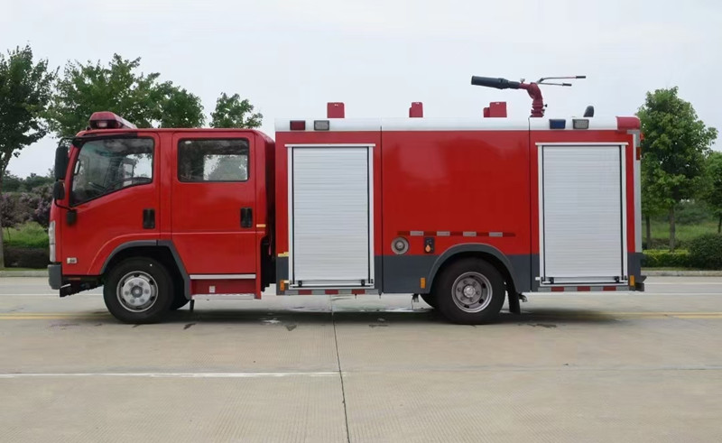 重慶五十鈴2-3噸消防車慶鈴QL1070A6HWY底盤改裝,平頭雙排駕駛室,液壓翻轉(zhuǎn),五十鈴4KH1CN5LS發(fā)動機,98馬力,國五排放,罐體容積2-3立方米;整車結(jié)構(gòu)緊湊,方便靈活,動力性能好,車速高,能自由進出鄉(xiāng)村狹窄道路及小區(qū),具有大型消防車的全套消防功能,上裝箱體的上裝骨架全部采用引進歐洲技術生產(chǎn)的鋁合金型材制造,整車的重量減少,機動性能和整車載重量提高。除了裝備消防水泵及器材以外,還設有較大容量的貯水罐及水槍、水炮等?蓪⑺拖廊藛T輸送至火場獨立進行撲救火災。也可以從水源吸水直接進行撲救,或向其他消防車和滅火噴射裝置供水。在缺水地區(qū)也可作供水、輸水用車,主要適用于大中城鎮(zhèn)、鄉(xiāng)村狹窄街道、城市小區(qū)、繁忙的批發(fā)市場等場所的一般物質(zhì)滅火,閑暇時可用于園林噴灌、道路清灑。