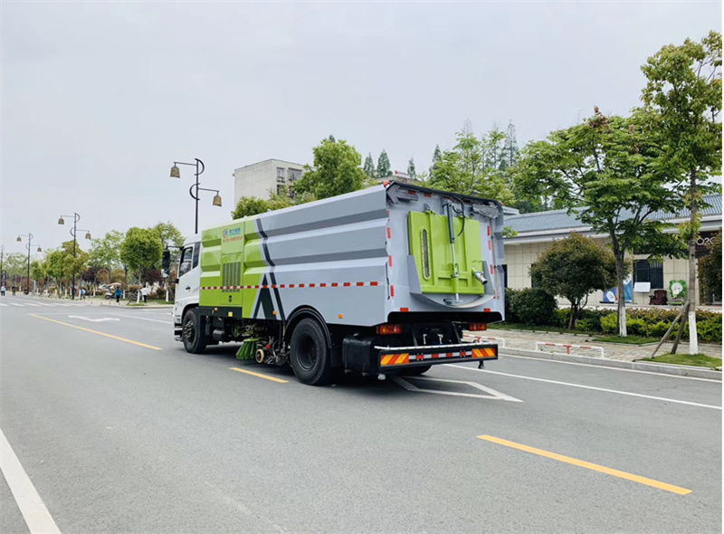 1)該車集掃路車、灑水車和高壓清洗車功能于一體,具備路面清掃、路面洗刷、高壓清洗、低壓沖洗、路緣石洗刷、垃圾收集、污水回收、噴霧降塵和道路隔離墻清洗、小廣告清洗等多種作業(yè)功能。