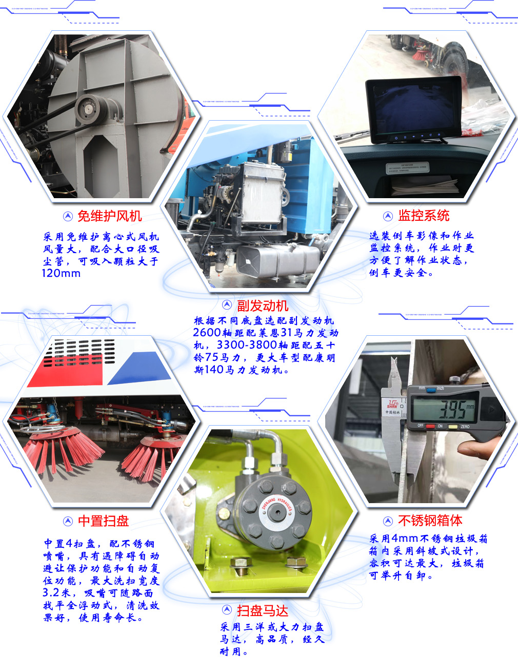 此車為道路洗掃專用車輛,專用裝置為掃刷.防護(hù)裝置均采用Q235A材質(zhì),均采用焊接連接,