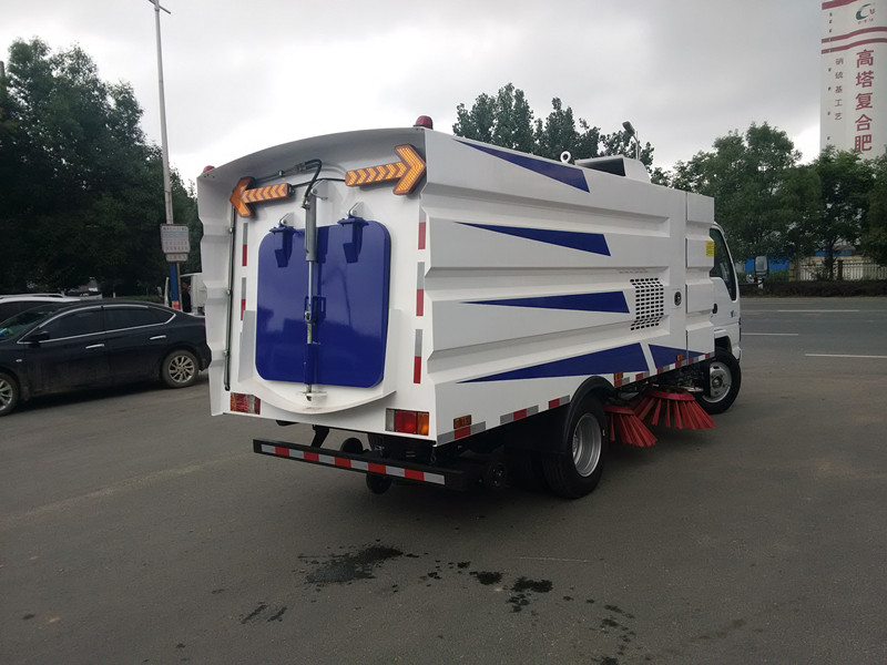 該掃路車采用重慶五十鈴型國五二類底盤改裝,加裝副發(fā)動機、風(fēng)機、清水箱、垃圾箱、左右立掃、后置吸盤,掃盤降塵系統(tǒng),液壓系統(tǒng)、專用裝置電控系統(tǒng)和副車架等改裝而成。