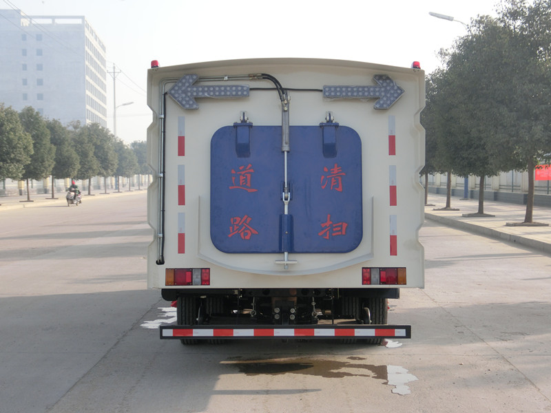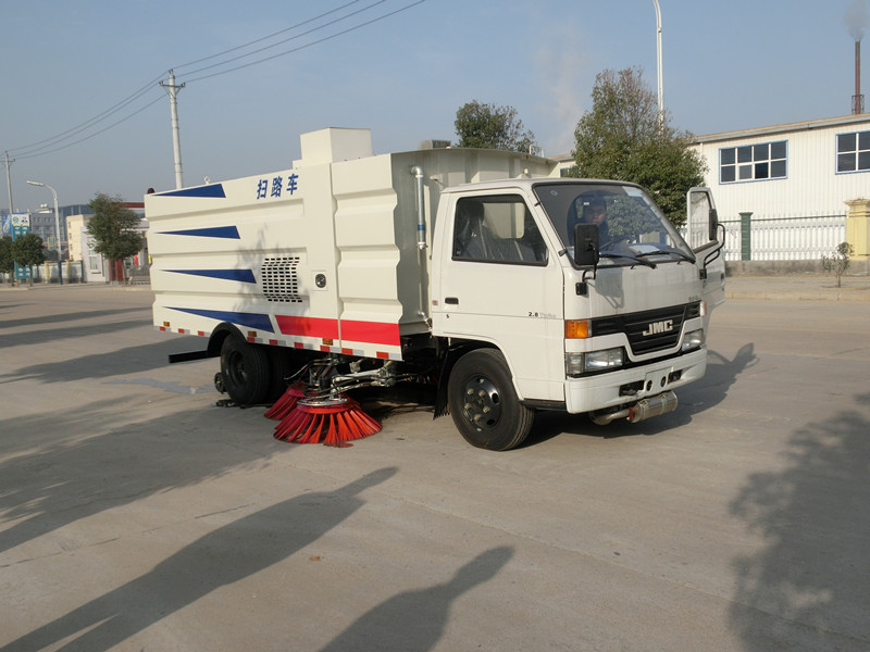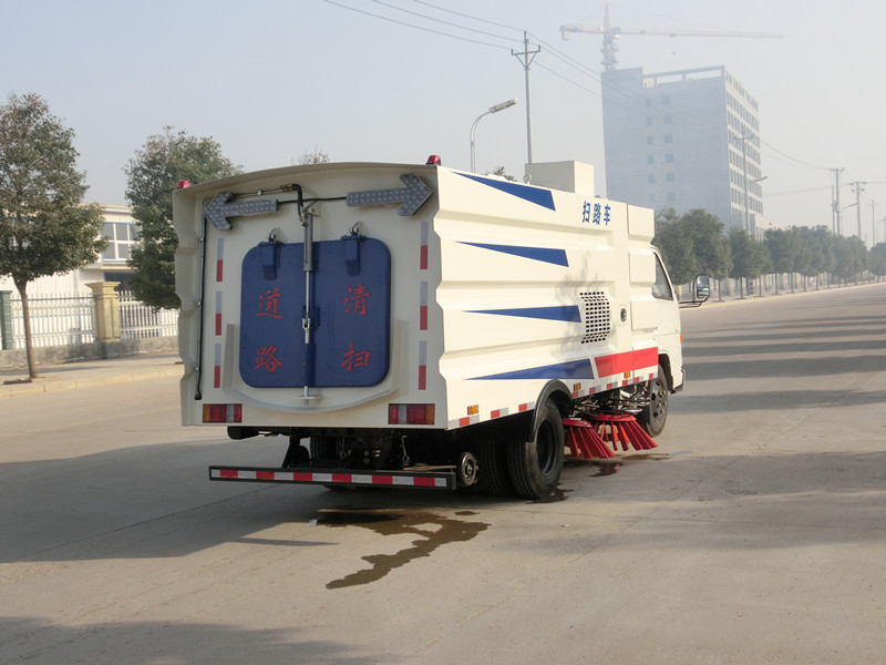 該掃路車采江鈴國(guó)五二類底盤改裝,加裝副發(fā)動(dòng)機(jī)、風(fēng)機(jī)、清水箱、垃圾箱、左右立掃、后置吸盤,掃盤降塵系統(tǒng),液壓系統(tǒng)、專用裝置電控系統(tǒng)和副車架等改裝而成(可加裝前沖后灑)