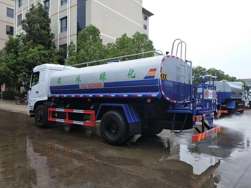 灑水車性能簡介;吸程≧7米,灑水寬度≧14-16米,射程≧25-40米,引水時(shí)間<5min,流量60m3/h。前沖(噴)、后灑、帶側(cè)噴(花灑)、帶后工作平臺(tái)、平臺(tái)上安裝綠化灑水高炮(炮噴射形狀可調(diào)節(jié):直沖、大雨、中雨、毛毛雨、霧狀、可連續(xù)調(diào)節(jié),360°旋轉(zhuǎn)),配消防接口,自流閥,濾網(wǎng),帶自吸自排功能。配備大功率專用灑水泵,泵可自吸自排,安裝過濾網(wǎng),帶消防接口,可通過消防栓進(jìn)水,帶自流閥,隨車選裝20米綠化卷盤,可噴灑農(nóng)藥,罐體金屬漆。罐體有橢圓和方圓罐兩種,可根據(jù)用戶的要求定做。
