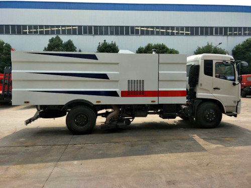該掃路車(chē)采用東風(fēng)天錦型國(guó)五二類(lèi)底盤(pán)改裝,加裝副發(fā)動(dòng)機(jī)、風(fēng)機(jī)、清水箱、垃圾箱、左右立掃、后置吸盤(pán),掃盤(pán)降塵系統(tǒng),液壓系統(tǒng)、專(zhuān)用裝置電控系統(tǒng)和副車(chē)架等改裝而成(可加裝前沖后灑,可以根據(jù)客戶(hù)要求做成方形、圓形箱