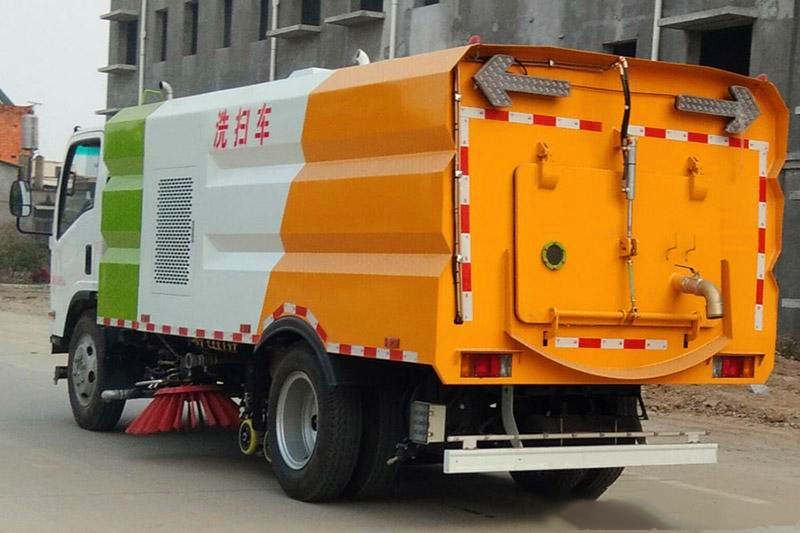 11、五十鈴700P洗掃車|五十鈴5噸多功能洗掃車的垃圾箱內(nèi)帶有自潔功能,在垃圾傾倒完成后可將箱內(nèi)的殘留垃圾沖洗干凈,減輕環(huán)衛(wèi)工人的負(fù)擔(dān)。