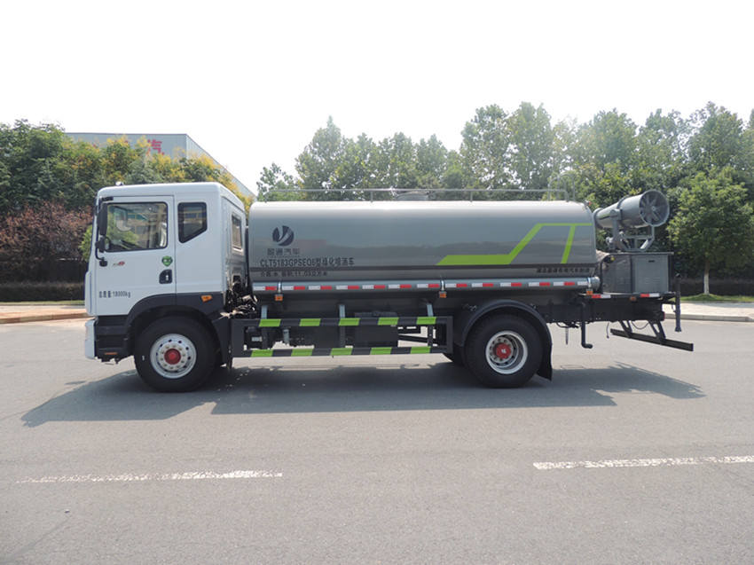 東風(fēng) D9- 12方抑塵車產(chǎn)品配置 1.底盤配置: 發(fā)動(dòng)機(jī)康明斯 195 馬力(四缸),法士特 8 檔變速箱,2315 駕駛 室,3.9T 前橋,8T 后橋,275/80R22.5 真空胎,軸距 3950,250 大梁, 斷氣剎,空調(diào),電動(dòng)玻璃,中控鎖。2.上裝配置: 1、罐體約為 12 方,可加裝 30-40 型霧炮 2、邊燈帶電,罐體尾部上方標(biāo)配 2 個(gè)紅色示寬燈, 3、標(biāo)配前噴為鴨嘴直沖,標(biāo)配后沖,用戶可根據(jù)自己的需求,來調(diào) 整對沖位置。 4、花紋防滑平臺(tái),炮筒后蓋為定制型螺栓卡扣, 5、前噴、后沖、后灑、側(cè)噴,綠化高炮開關(guān)球閥均采用 50 大通經(jīng) 不銹鋼球閥, 6、新式軸承式水炮,更加耐用, 7、60-90 型水泵, 8、防腐法蘭墊片, 9、鋁制后灑,不易炸開 10、罐體自動(dòng)焊(美國林肯焊機(jī)及電源),拼板自動(dòng)焊接,封頭環(huán) 縫焊接,無氣孔,焊縫美觀。 11、側(cè)護(hù)網(wǎng)、后保險(xiǎn)杠、均為螺栓連接,方便拆卸,維修方便。 12、塑料擋泥板,替代鐵擋泥板,更加輕便,用螺栓連接,方便拆 卸。 13、前部、后部主管連接處為 6 孔圓法蘭,不易沖墊