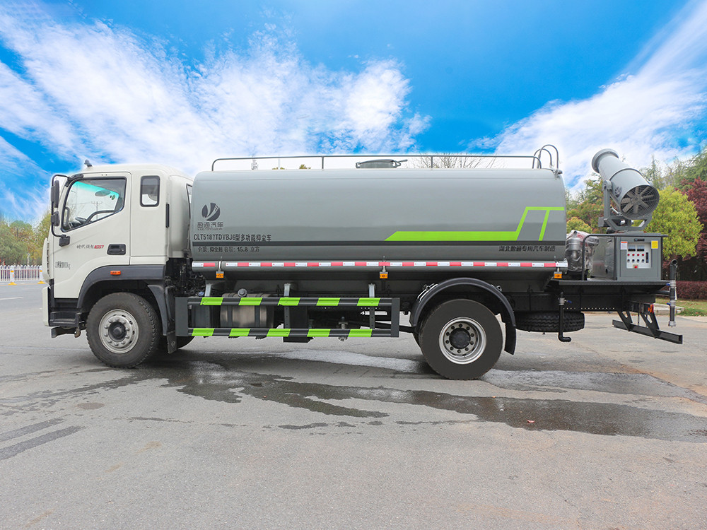 二.產(chǎn)品配置 1.底盤配置: 發(fā)動機玉柴 245 馬力(六缸),法士特 8 檔,3950 軸距,10.00 鋼絲胎,前 4.5T/后 10T,中控鎖,電動玻璃,助力,空調(diào),行車記錄 儀2.上裝配置: 1、罐體約為 12 方,可加裝 30-40 型霧炮 2、邊燈帶電,罐體尾部上方標配 2 個紅色示寬燈, 3、標配前噴為鴨嘴直沖,標配后沖,用戶可根據(jù)自己的需求,來調(diào) 整對沖位置。 4、花紋防滑平臺,炮筒后蓋為定制型螺栓卡扣, 5、前噴、后沖、后灑、側(cè)噴,綠化高炮開關(guān)球閥均采用 50 大通經(jīng) 不銹鋼球閥, 6、新式軸承式水炮,更加耐用, 7、60-90 型水泵, 8、防腐法蘭墊片, 9、鋁制后灑,不易炸開 10、罐體自動焊(美國林肯焊機及電源),拼板自動焊接,封頭環(huán) 縫焊接,無氣孔,焊縫美觀。 11、側(cè)護網(wǎng)、后保險杠、均為螺栓連接,方便拆卸,維修方便。 12、塑料擋泥板,替代鐵擋泥板,更加輕便,用螺栓連接,方便拆 卸。 13、前部、后部主管連接處為 6 孔圓法蘭,不易沖墊