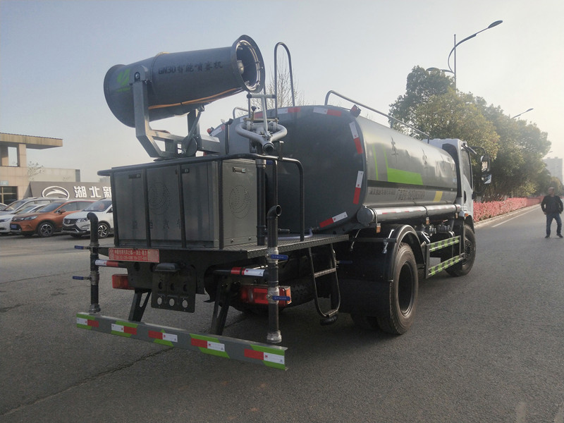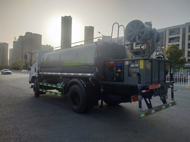 專用部分:帶前沖、后灑、側(cè)噴、后工作平臺(tái)、尾部帶綠化炮,帶自吸自排灑水泵,后工作平臺(tái)高壓水炮直沖射程25-30米(可調(diào)成:直沖狀、大雨、中雨、小雨、毛毛雨),整車帶消防接頭、自流閥。附送2根水管。加裝30型霧炮,霧炮可以遙控操作。