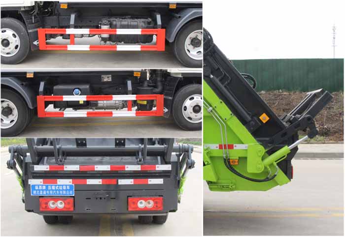 福田小卡3方壓縮垃圾車(chē)該車(chē)專(zhuān)用裝置為垃圾箱體及液壓系統(tǒng)裝置,主要用于垃圾的收集,轉(zhuǎn)運(yùn)作業(yè).側(cè)防護(hù)材料為:Q235碳鋼,連接方式為:螺栓連接,后部防護(hù)為專(zhuān)用裝置代替,后部防護(hù)離地高度(mm):410.選裝無(wú)上料裝置時(shí)無(wú)后伸,選裝密封斗裝置,翻桶裝置,擺臂裝時(shí),后伸280mm;選裝翻斗裝置時(shí),后伸380mm.ABS系統(tǒng)控制方式為4S/4M,氣剎:ABS型號(hào)為CM4XL-4S/4M,生產(chǎn)廠家為廣州瑞立科密汽車(chē)電子股份有限公司.液剎:ABS型號(hào)為CM4YL,生產(chǎn)廠家為廣州瑞立科密汽車(chē)電子股份有限公司.發(fā)動(dòng)機(jī)/油耗申報(bào)值為(L/100km):Q23-115E60/11.12,Q23-115C60/11.31.該車(chē)選裝直接供電式ETC車(chē)載裝置.該車(chē)型整備質(zhì)量包含隨車(chē)工具,不含備胎.貨箱質(zhì)量為1750kg,貨箱材質(zhì)為T(mén)700,側(cè)板和頂板厚度為2.5mm;底板厚度為3mm.選裝貨箱側(cè)面樣式.后部作業(yè)燈具僅在車(chē)輛作業(yè)時(shí)開(kāi)啟,行駛過(guò)程中不可開(kāi)啟.整車(chē)長(zhǎng)度/后懸/后伸對(duì)應(yīng)關(guān)系(mm)為:5995/1735/280,5995/1635/380,5830/1850/0.隨底盤(pán)選裝新前格柵及新logo,選裝新前圍.選裝油箱電瓶安裝位置.
