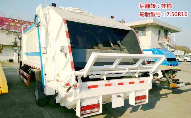 容積7~8立方米,采用邊四底四碳鋼,底部有污水箱,弧形斗體,內(nèi)置推板、掛桶,采用國內(nèi)知名液壓油缸、油泵。多路閥,后帶掛桶后翻轉(zhuǎn)。