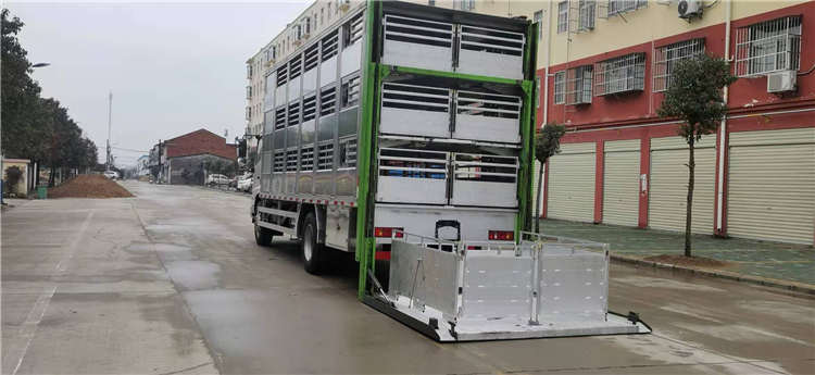 東風(fēng)天龍9.6米鋁合金拉豬車后門整體升降,裝豬時(shí)候從下往上裝第1層,依次第2層,第3層,下豬時(shí)候從上往下,鋁合金拉豬車比之前不銹鋼拉豬車自重更輕,箱體兩邊可以左右軒開,人可以站直在箱體內(nèi)清洗更方便
